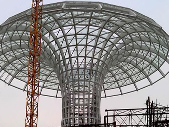 二、球形网架结构因其结构新颖,受力合理,自重轻、用钢量低等优点。如大型体育场馆球形黄冈螺栓球网架、公共场馆球形网架、电厂黄冈螺栓球网架、水泥工业球形网架、仓储物流球形网架、黄冈干煤棚工业球形网架、黄冈收费站黄冈加油站球形网架、展览中心、影剧院、商场、航站楼、候车厅、工厂黄冈车间、仓库、电视塔等球形螺栓球节点网架。国内球形网架结构主要分为:黄冈焊接球节点网架及螺栓球节点网架两种。螺栓球节点网架其构件工厂内加工量较大,现场安装便捷,适用于现场工期紧,黄冈施工条件、用电量受制约,网架形状复杂、黄冈杆件定位困难的异形结构。螺栓球节点球形网架系统基本由黄冈杆件、螺栓球、支撑支座等组成。按照节点形式可分为交叉黄冈桁架体系、四角锥体系、三角锥体系等。支撑方式多为固定支座支撑。对于大面积、大跨度及有特殊受力或伸缩要求的网架结构可采用橡胶支座、滑移支座、球铰支座等支撑形式,以满足结构自身的受力稳定、均衡,便于内力释放等设计要求。